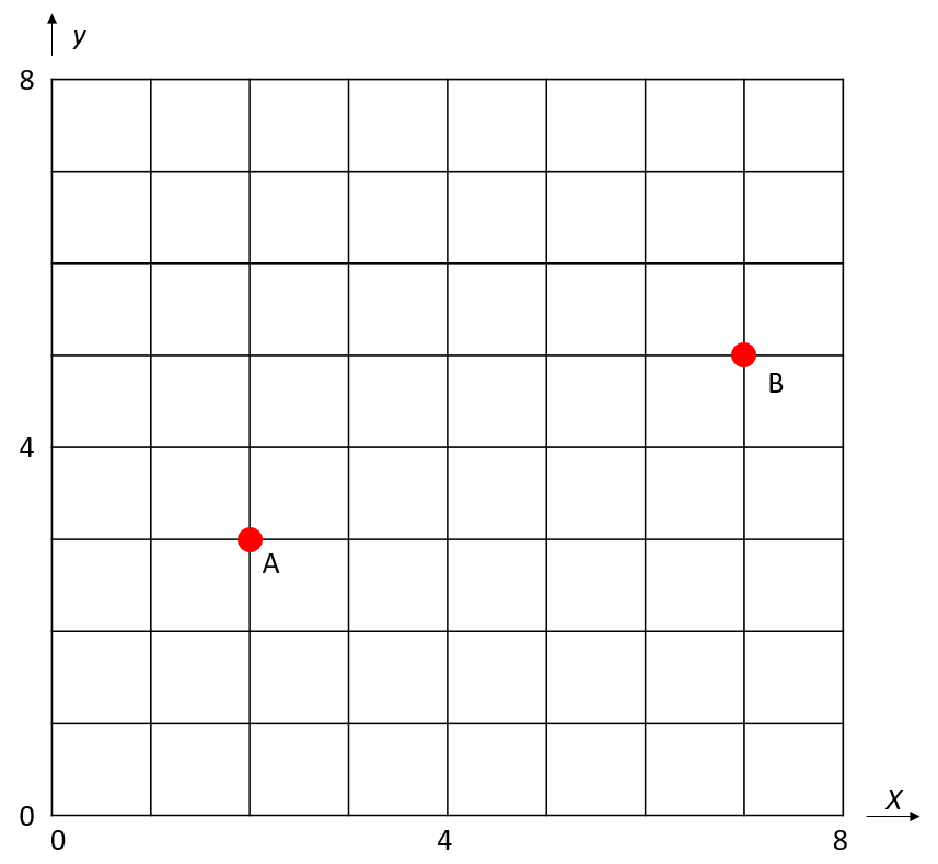 On rappelle que la distance entre deux points A et B de coordonnées respectives \((x_A, y_A)\) et \((x_B, y_B)\) est donnée par la formule : \(\sqrt{(x_A-x_B)^2+(y_A-y_B)^2}\)
