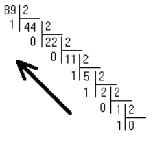 Cherchons l'écriture de \((89)_{10}\) en base 2.