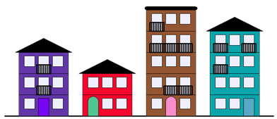On souhaite écrire un programme qui crée une image contenant le dessin d’une rue avec des immeubles générés aléatoirement.