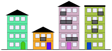 - - les immeubles ont la même couleur pour tous les niveaux (rez-de-chaussée et étages) ;