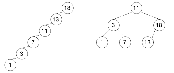 Q7 : On considère les deux ABR ci-dessous dont les valeurs sont identiques. Dans lequel la recherche sera-t-elle globalement la plus efficace ?