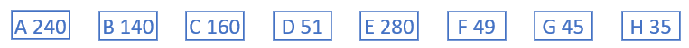 | Nombre | 240 | 140 | 160 | 51 | 280 | 49 | 45 | 35 |