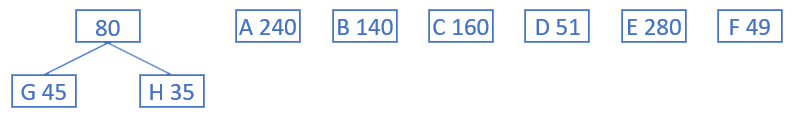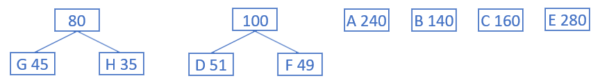 2) En suivant l'algorithme précédent, terminer la construction de l'arbre de Huffman.