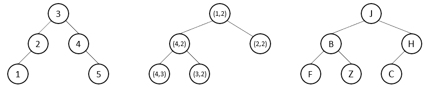On considère des arbres binaires dont les valeurs sont des nombres entiers, implémentés à l'aide de tuples imbriqués (avec None si l'arbre est vide).
